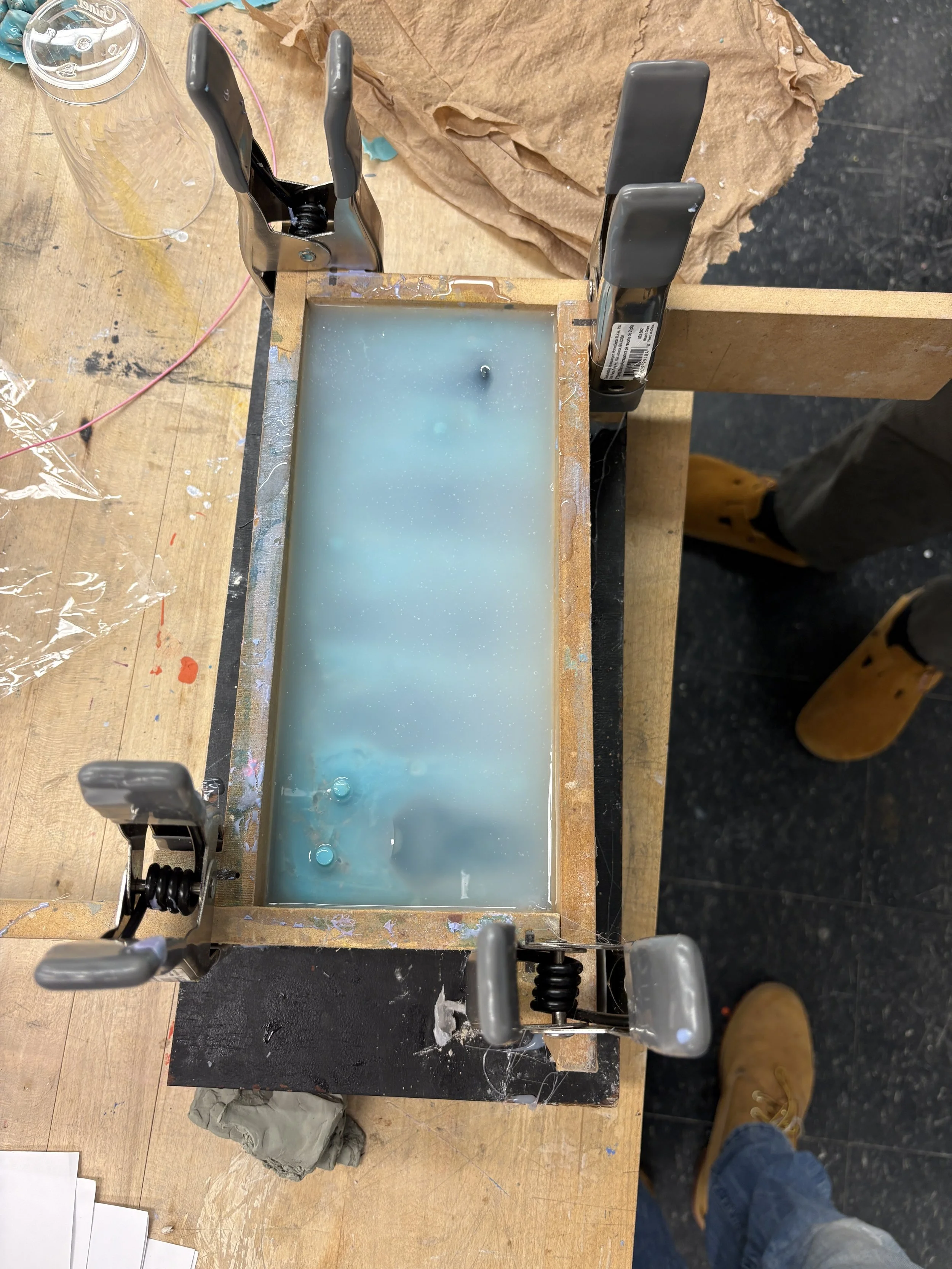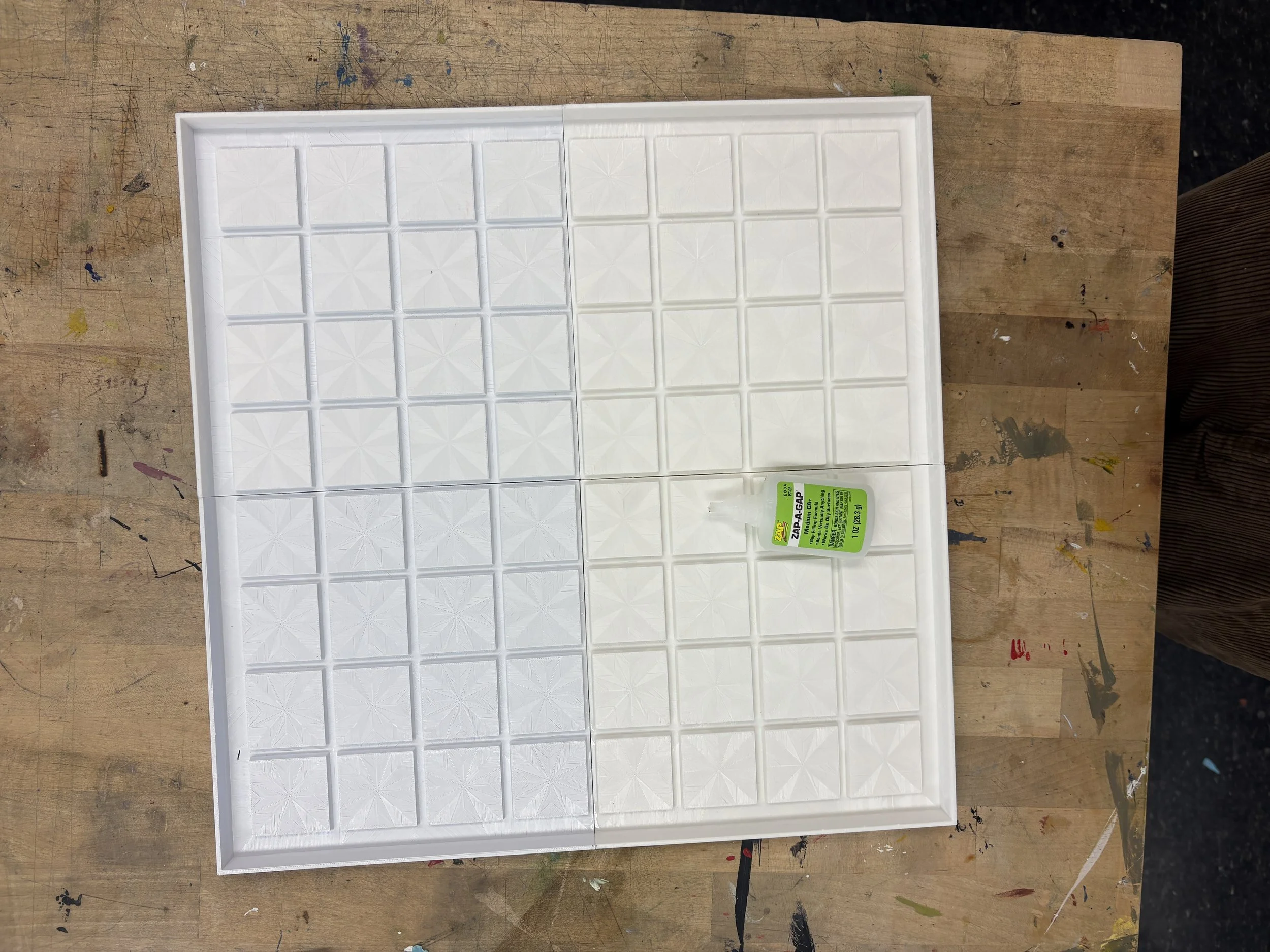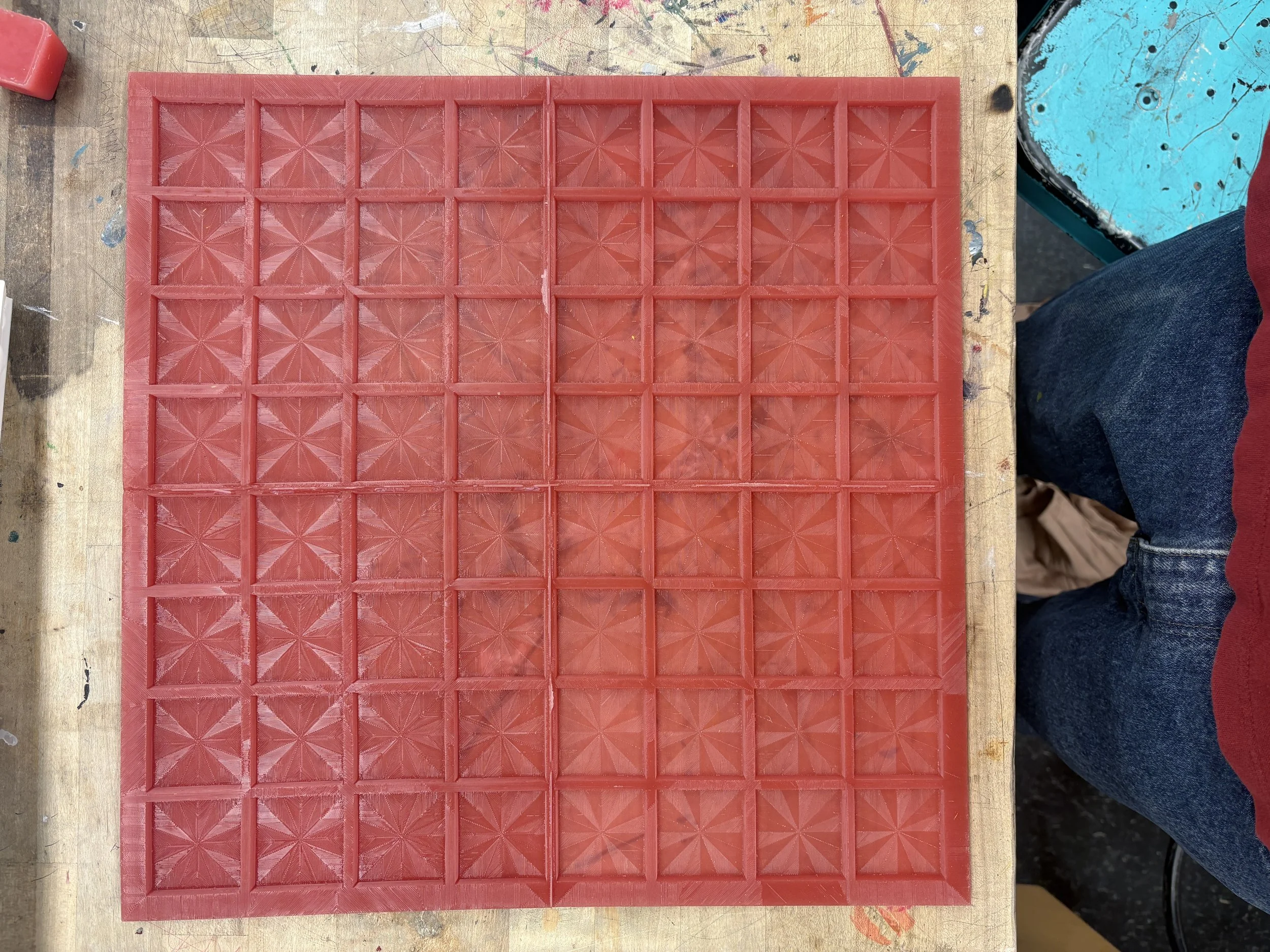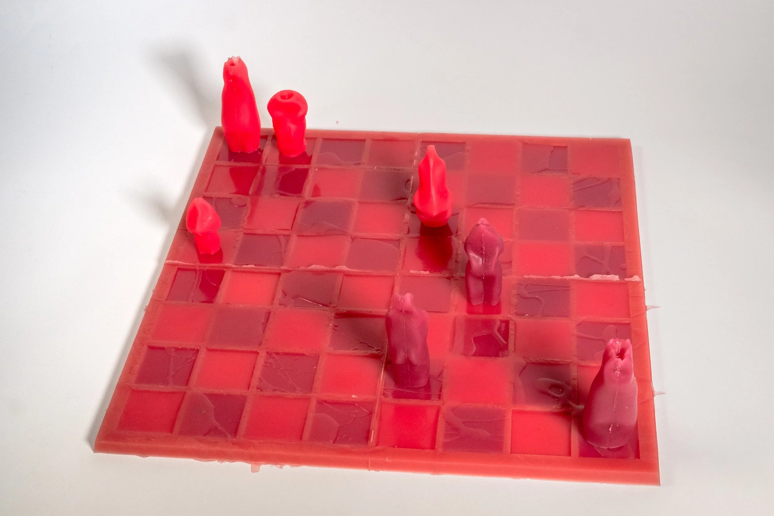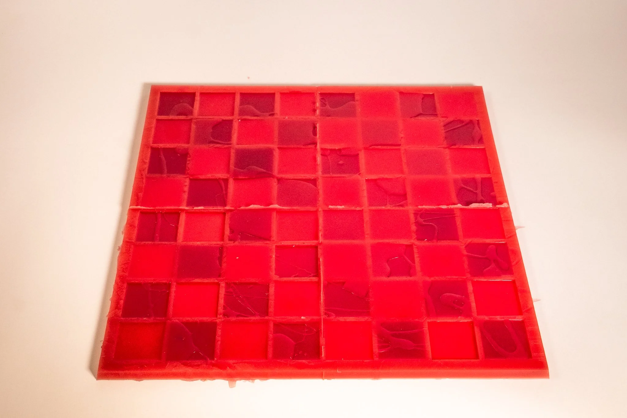 To make the chessboard, I 3d printed an open pour mold of the base, then filled each square with the color recipe for each side.