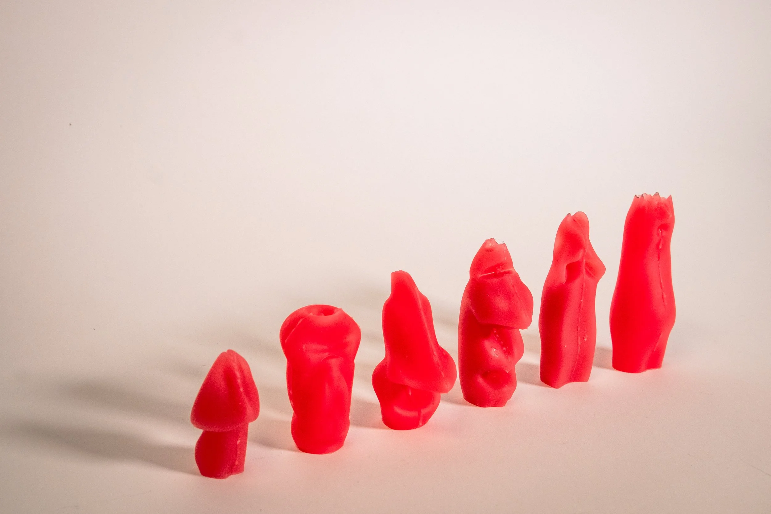 These hominid forms blend different elements of human anatomy to create these uncomfortable, burdenend and beastly geometries that remind the user of the act they are comitting.