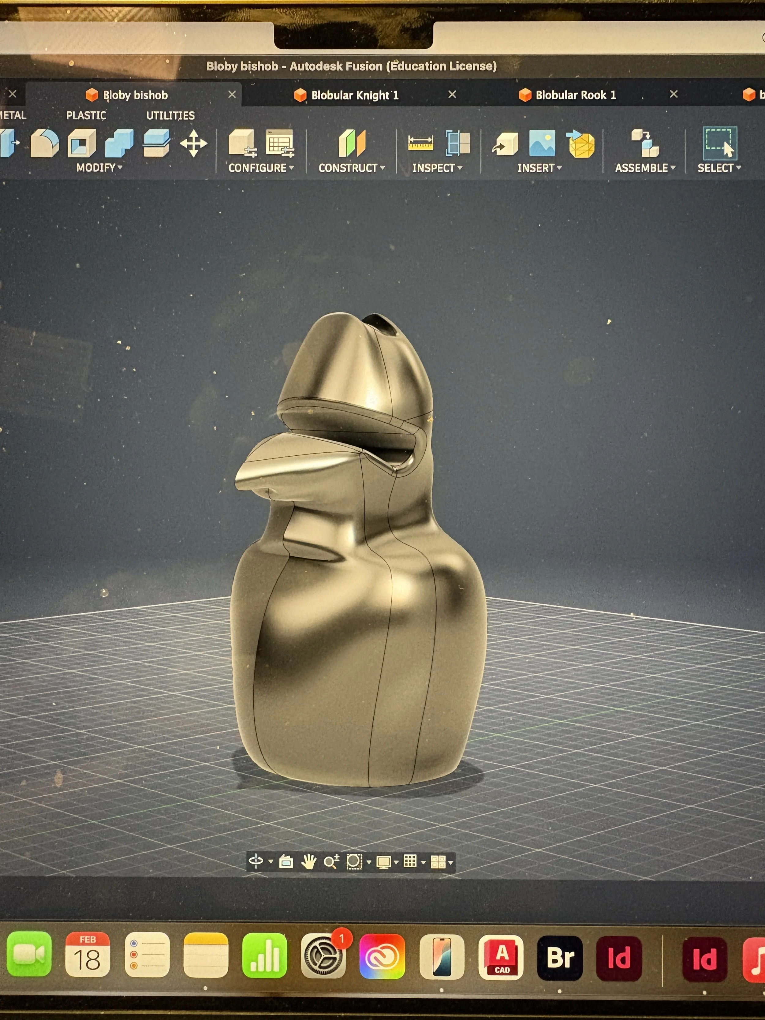 after a midpoint critique, I revised the set using feedback. This set was still modled in Fusion360, but made with a much more sophisticated understanding of surface and forms mode.